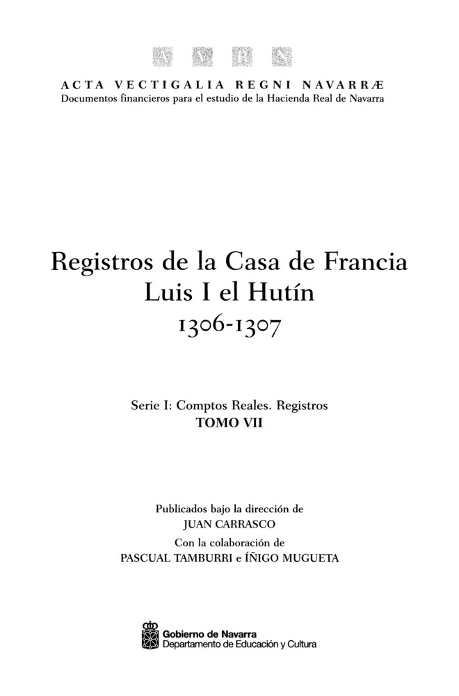 Título: Registros de la Casa de Francia, Luis I el Hutín : 1306-1307 / publicados bajo la dirección de Juan Carrasco ; con la colaboración de Pascual Tamburri.