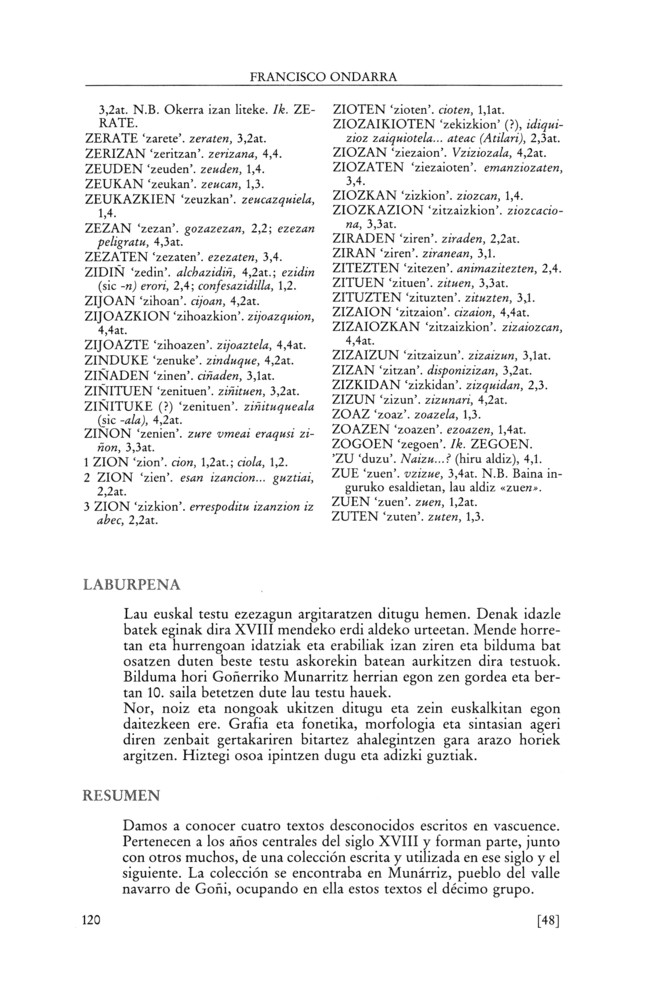 Goñerrin aurkitutako lau esukal testu (XVIII. m.)